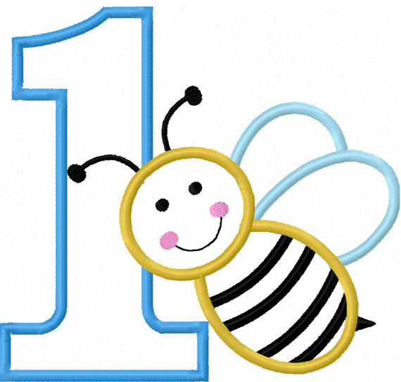 Bee Number 1 Birthday Applique Embroidery Design NO:1274