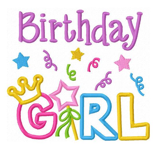 Birthday Girl With Crown Applique Machine Embroidery Design NO:1384