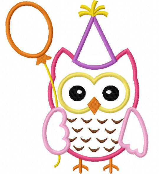 Birthday owl Applique Machine Embroidery Design NO:1167