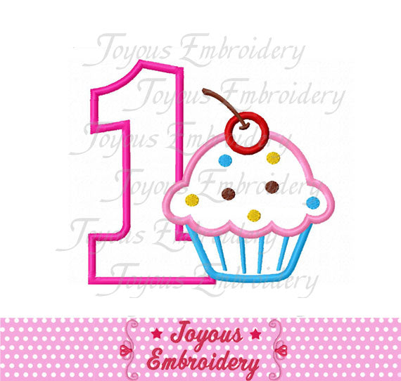 Cupcake Number 1 Applique Embroidery Design NO:1586