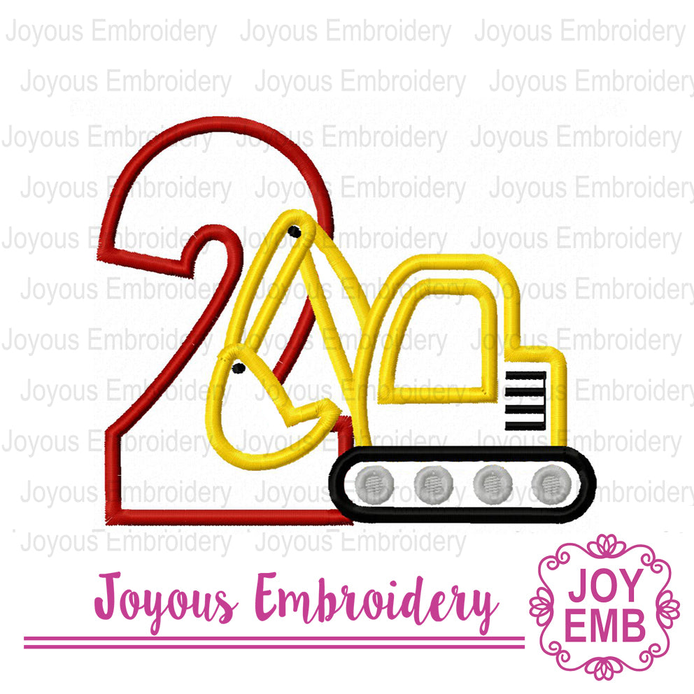 Excavator Number 2 Applique Machine Embroidery Deisng