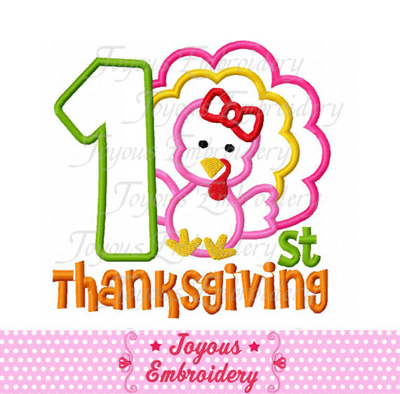 First Thanksgiving Turkey Girl Embroidery Applique Design NO:1634