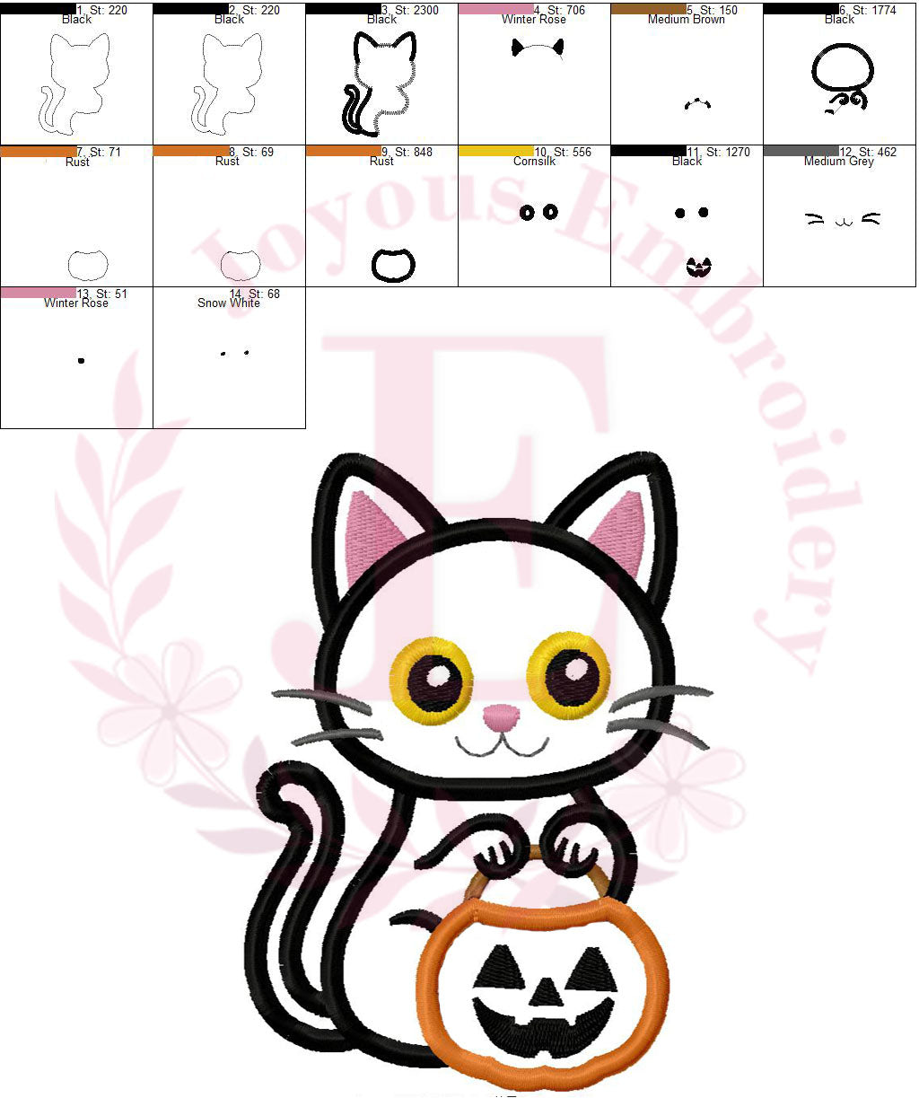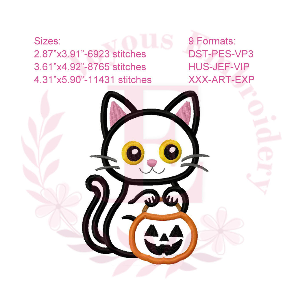 This adorable spooky cat embroidery design is perfect for adding festive spirit to your creations.