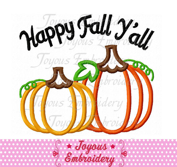 Happy Fall y'all Thanksgiving Pumpkin Applique Embroidery Design No.1807