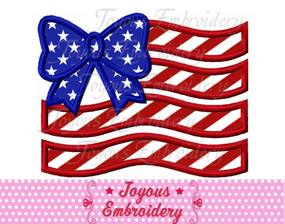 Instant Download 4th of July Bow Flag Applique Embroidery Design NO:2473