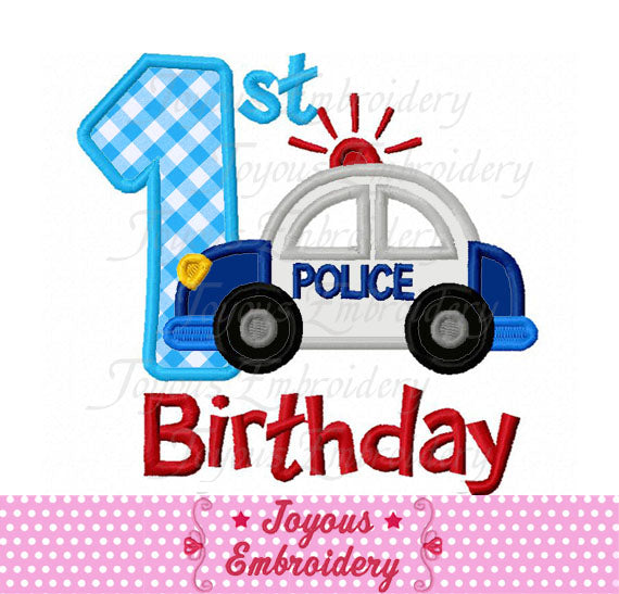 My 1st Birthday Police car Applique Machine Embroidery Design NO:2018