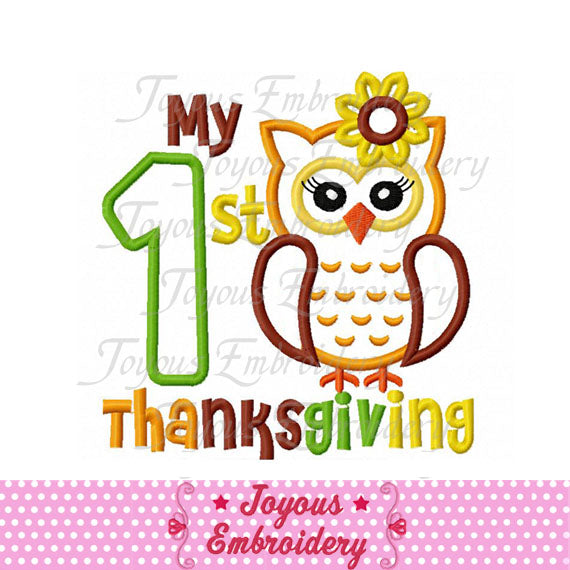 My 1st Thanksgiving Owl For Girl Applique Embroidery Design NO:1582