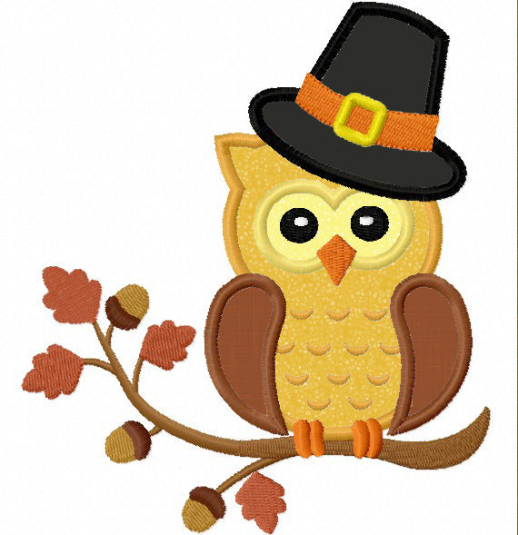 Thanksgiving Owl On The Branch Applique Machine Embroidery Design NO:1216