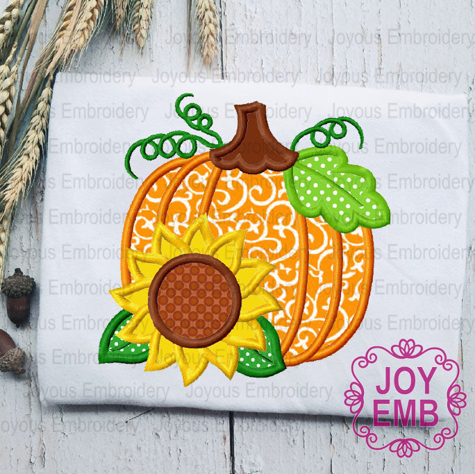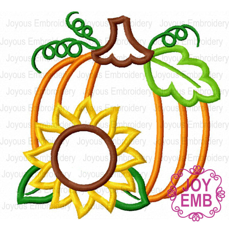 Thanksgiving Pumpkin Sunflower Applique Machine Embroidery Design NO:2692